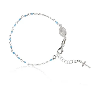 Nr produktu: 321. 17 Wyjątkowa bransoletka srebrna rodowana - różaniec Biżuteria włoska Srebro próba 925 rodowana Kryształy jasnoniebieskie hydrotermalne Waga bransoletki: ~2,6 g Długość bransoletki: 16 cm +3 cm przedłużka Kryształy jasnoniebieskie hydrotermalne 2 mm Opakowanie do bransoletki - zdjęcie.
