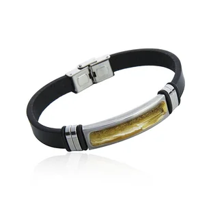 nr. prod. 260. 8UNISEX Bransoletka z bursztynem męska na skórze ze stali szlachetnej Skóra,stal szlachetna , bursztyn naturalny w kolorze żółtym Obwód: max 20 cm dowolnie można wyregulować do maksymalnej długości 20 cm Szerokość: 1 cm ; długość zdobienia z bursztynu 4 cm Opakowanie - na zdjęciu. Do każdej biżuterii z bursztynem zostaje dołączony certyfikat autentyczności bursztynu.