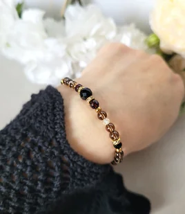 Damska bransoletka z kamieni naturalnych: Turmalinu, Granatu, Kwarcu dymnego oraz z Cyrkonii głównie przeznaczona dla zodiakalnego Barana. Całość przepięknie się mieni. TURMALIN czarny- Najsilniejszy z kami ...