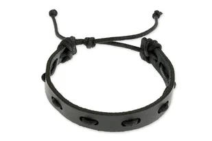 Bransoletka Wiązana skórzana Męska bransoletka skórzana przeplatana sznurkiem jubilerskim. W kolorze czarnym. Posiada regulowany obwód, za pomocą ruchomego w...