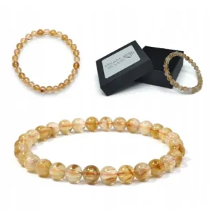 Bransoletka CYTRYNStylowa i ponadczasowa bransoletka wykonana z naturalnych kamieninbsp;CYTRYNnbsp;zachwyca swoją estetyką oraz starannym wykonaniem. Każdy koralik posiada unikalną strukturę i odcień, dzięki czemu każda bransoletka jest niepowtarzalna.Bransoletka została wykonana na elastycznej, wytrzymałej gumce, co zapewnia wygodę noszenia oraz idealne dopasowanie do nadgarstka. To uniwersalny dodatek, który doskonale sprawdzi się zarówno na co dzień, jak i jako delikatny akcent uzupełniający bardziej eleganckie stylizacje.Dlaczego warto wybrać tę bransoletkę?Wykonana z naturalnych kamieni cytrynuElastyczna forma - komfort i łatwe zakładanieKażda bransoletka jest unikatowaIdealna na prezent lub jako stylowy dodatek na co dzieńParametry:
