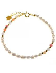Bransoleta wykonana ze srebra próby 925 , pozłacanego 24 karatowym, żółtym złotem Kamień: Larimar + Turmalin + Perła + Hematyt Rozmiar kamienia: 4/2 /4 mm Dł...