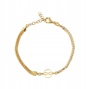 Bransoletka srebrna, pozłacana ze znakiem nieskończoności w kółeczku. Srebro próby 925 Srebro pozłacane Długość: 18 cm + 3 cm Waga: 2. 6 g Wszystkie nasze produkty posiadają wymagane prawem znaki probiercze. Do każdego zakupu dodajemy pudełko prezentowe gratis! Każdy wyrób jest starannie zapakowany i zabezpieczony przez uszkodzeniami oraz osuwaniem się podczas transportu.