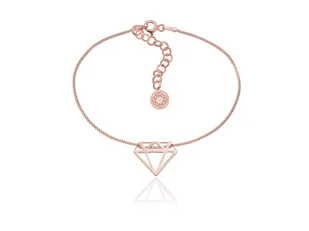 Bransoletka Diament ażurowy diament na delikatnym łańcuszku to stylowa i szykowna ozdoba nadgarstka dla każdej miłośniczki blasku. Wymiary diamentu - ok. 1,1 x 1,2 cm Długości do wyboru: 17 cm + przedłużenie - długość na rękę 24 cm + przedłużenie - długość na nogę wykonana w całości ze srebra pr. 925 pokrytego różowym złotem.