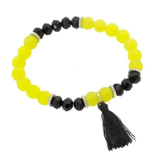 Bransoletka w kontrastowych kolorach wykonana z kamieni naturalnych ( jadeit w żółtym neonowym kolorze 8 mm) i czarnych szklanych kryształków bardzo dobrej j...