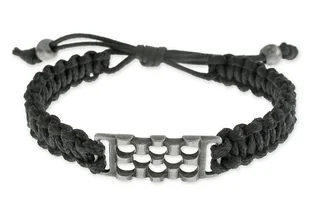 Bransoletka z szachownicą czarna Bransoletka pleciona technika makrama z plecionką. Zakończona koralikami i regulowana za pomocą węzła. ✔ Produkt jest dostęp...