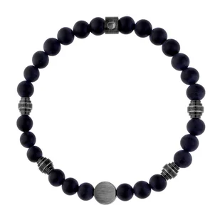 Bransoletka wykonana z matowego onyksu z charmsem - pastylką i zdobionymi bedsami w kolorze szarym z efektem przecierania vintage. Kolor: Czarny Materiał: stal szlachetna, kamień Kamień: onyks Obwód wewnętrzny: ~19 cm (elastyczna) Wymiary: