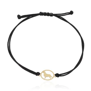 Bransoletka sznurek, próba złota 585. Rodzaj: Sznurek Próba złota: 585 Symbol: Piesek Wymiary zawieszki [mm]: ok. 15.0 x 9.0 Waga: ok. 0.19 g Kolor sznurka: Czarny Długość regulowana