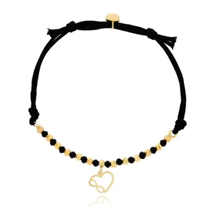 Bransoletka czarny sznurek serce, znak nieskończoności, kulki srebro pozłacane pr. 925
