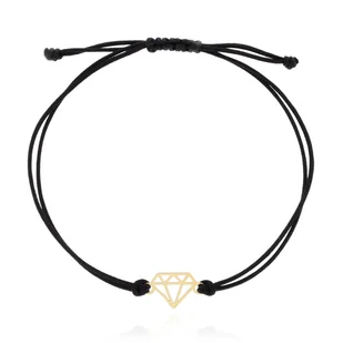 Bransoletka sznurek, próba złota 585 Symbol: diament Wymiary motywu: ok. 12.0 mm x 9.0 mm Waga: 0.13 g kolor sznurka: czarny Długość regulowana