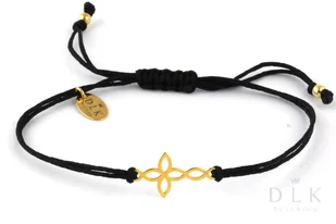 Bransoletka „Czarny sznurek ze złotym krzyżykiem” to lekka, bardzo kobieca propozycja z kolekcji wiosenno-letniej. Jej wyjątkowość tkwi w niezobowiązującym charakterze i skromnej, ale eleganckiej formie. Bransoletka wykonana jest ze sznurka w czarnym kolorze, ozdobny, ażurowy krzyżyk, kulki i zawieszka DLK wykonane są z pozłacanego srebra próby 925. Kolekcja wiosenno-letnia Surowiec: Srebro próby 925 Rozmiar elementu srebrnego: