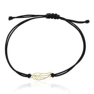 Złota bransoletka na sznurku ze złotymi kuleczkami 585 i czarnymi kulkami