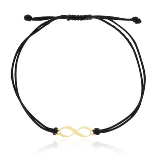 Bransoletka czarny sznurek serce, znak nieskończoności, kulki srebro pozłacane pr. 925