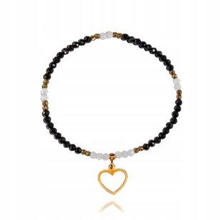 Bransoletka Czarny Turmalin Kamień Księżycowy 3mm Serce Serduszko dł. 17cm, bez marki, AG00000616