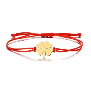 Bransoletka czerwona sznurek nitka na szczęście koniczyna