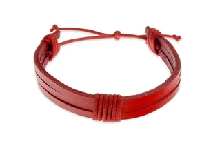 Bransoletka Wiązana skórzana Męska bransoletka z trzech pasków owiniętych rzemieniami. Wykonana z czerwonej eko - skóry. Posiada regulowany obwód, za pomocą ...