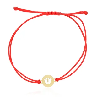 Bransoletka czerwony sznurek stópki w złotym kółku pr.585