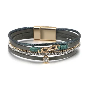 Bransoletka damska boho zielona magnetyczna z ozdobą złotą