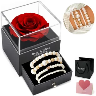BRANSOLETKA DAMSKA Perły Diamentowana Szkatułka z Różą Na Prezent Pozłacana