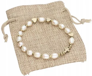 Perłowy Różaniec Bransoletka Złota Krzyżyk Prezent Biżuteria Srebro 925