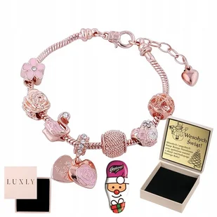 BRANSOLETKA DAMSKA RÓŻOWE ZŁOTO MODUŁOWA DO CHARMS REGULOWANA Z GRAWEREM