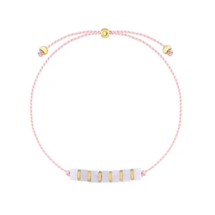 Bransoletka damska sznurkowa z kwarcem różowym i złotymi akcentami