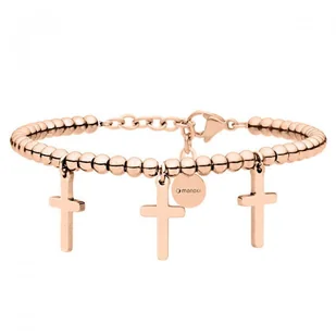 Niezwykła, damska bransoletka ze stalowych kuleczek. Charakteryzuje ją prosty design wzbogacony o zawieszki w kształcie krzyżów. Bransoletka zapinana jest na karabinek. Całość wykonano z hipoalergicznej stali szlachetnej 316L, która jest wyjątkowo odporna na niekorzystne działanie czynników zewnętrznych. Powierzchnię pokryto innowacyjną powłoką PVD, która nadaje trwałą barwę oraz wysoką odporność na zarysowania.