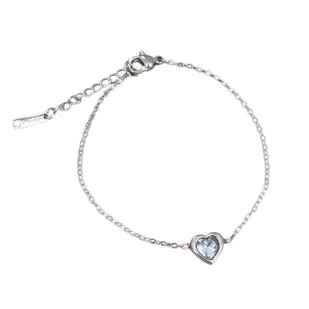 Bransoletka damska z sercem srebrny 19 cm Bransoletka damska z sercem srebrny 19 cm Bransoletka damska z sercem – stal tytanowa 19 cm regulowana Subtelna, elegancka bransoletka wykonana z wysokiej jakości stali tytanowej, odpornej na zarysowania i utratę koloru. Delikatny splot typu ankier nadaje jej lekkości, a serduszko z połyskującym kamieniem dodaje uroku i kobiecości. Dlaczego warto ją mieć? Dodaje klasy i elegancji każdej stylizacji Idealna zarówno do sukienki, jak i jeansów Lekka i wygodna – nie przeszkadza podczas noszenia Regulowana długość – dopasujesz ją idealnie do nadgarstka Świetny pomysł na prezent dla wyjątkowej kobiety Materiał: stal nierdzewna Kolor: srebrny połysk Długość całkowita: