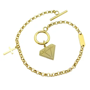 Bransoletka diament i krzyż - Pozłacana stal chirurgiczna