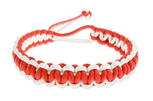 biały, czerwony Materiał: sznurek jubilerski woskowany Szerokość: 1,2 cm Obwód: uniwersalny regulowany, min. 17 cm Długość regulacji: