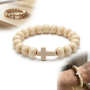 Każdy element posiada naturalne różnice w strukturze i odcieniu drewna, dzięki czemu każda bransoletka ma indywidualny charakter. Drewniany krzyżyk tworzy spójną, estetyczną całość z koralikami. Komfort noszenia i uniwersalne zastosowanie Lekka konstrukcja sprawia, że bransoletka jest wygodna w codziennym użytkowaniu. Elastyczna gumka dobrze dopasowuje się do nadgarstka i umożliwia szybkie zakładanie bez zapięcia. Bransoletka sprawdzi się jako dyskretny dodatek noszony na co dzień, zarówno do casualowych stylizacji, jak i prostych, klasycznych zestawów.