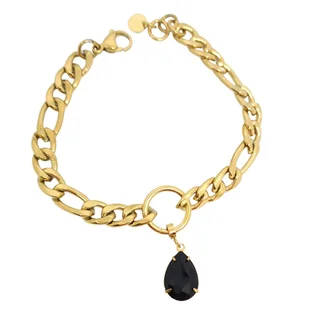 Bransoletka figaro z czarnym kryształkiem - Pozłacana stal szlachetna