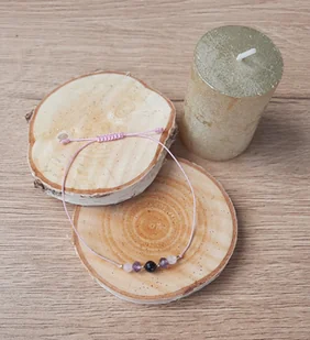 Bransoletka Fluoryt, Czarny Turmalin, Kwarc Różowy, różowy sznurek, regulowana
