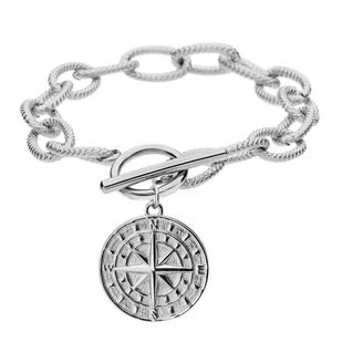 Bransoletka damska wykonana z grubego, zdobionego łańcucha o zdobionej fakturze z medalionem -kompasem - różą wiatrów. Bransoletka wykonana z hipoalergicznej stali szlachetnej. Pasuje do każdej stylizacji, zarówno tej do biura, jak i na elegancką kolację. Łańcuchy o dużych ogniwach to bezsprzeczny hit tego sezonu, który musi się znaleźć w garderobie każdej koneserki mody. -bransoletka stal szlachetna 316L