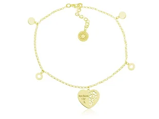 Bransoletka z sercem i grawerem materiał srebro pr. 925 powłoka 24k złoto kamień bez kamienia wymiary ring i koło - średnica ok. 6mm ażurowe serce - ok. 16 x 17 mm długość łańcuszka minimalna ok. 17 cm, maksymalna ok.