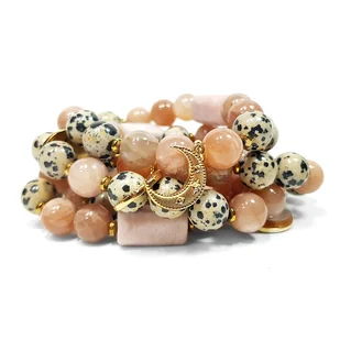 Bransoletka kamień słoneczny, jaspis dalmatyńczyk, opal różowy i księżyc