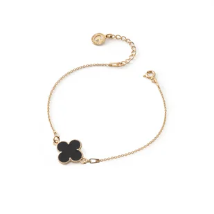 Bransoletka koniczyna z czarnej żywicy, srebro 925 w złotym pokryciu