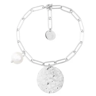 Wyjątkowa i modna bransoletka z łańcucha o płaskich, minimalistycznych ogniwach z zawieszką o ciekawej, młotkowanej strukturze oraz perełką. Bransoletka wykonana z hipoalergicznej stali szlachetnej. Bransoletka z pewnością sprawdzi się w stylizacjach na co dzień oraz jak i na wystawną kolacje. Łańcuchy o dużych ogniwach to niekwestionowany hit tego sezonu, który musi się znależć w garderobie każdej miłośniczki mody. Materiał: stal szlachetna