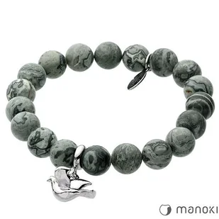 -bransoleta stal szlachetna 316L -kamień: naturalny jaspis mapstone -średnica kamienia: 10 mm -wymiary elementu (gołębia): 14 x 17 mm -długość: elastyczna, wytrzymała gumka silikonowa Każda zamawiana biżuteria z kamieni naturalnych jest jedyna w swoim rodzaju i może nieco różnić się kolorem od prezentowanej na zdjęciach.