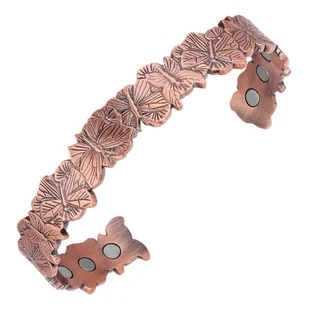 Bransoletka miedziana magnetyczna bangla damska z motywem motyli Bransoletka magnetyczna z czystej miedzi bangla z motywem motyli – kobiecy akcent inspirowany naturą Stworzona dla kobiet, które wybierają biżuterię z charakterem i subtelnym przesłaniem. Miedź od wieków ceniona jest za swoją trwałość i naturalne pochodzenie. W tej odsłonie zyskuje dekoracyjny wymiar – motyle tworzą spójną kompozycję symbolizującą lekkość, przemianę i nowy etap. To dodatek, który podkreśla styl w wyważony, nienachalny sposób. Wykonanie Bransoletka została wykonana z wysokiej jakości czystej miedzi.