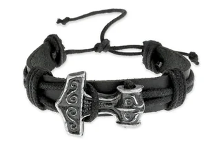 Bransoletka z Młotem Thora amulet ochronny Mocna bransoletka czarna skórzana. Z Młotem Thora w kolorze stalowym Regulowany obwód ✔ Produkt jest dostępny ✔ Polska marka ✔ Fabryczne opakowanie Informacje Marka: Jubileo Kraj produkcji: Polska Kolor: czarny stalowy Materiał: