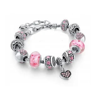 Bransoletka modułowa Charms Beads Różowe Serce Murano