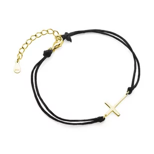 Srebrna bransoletka wykonana ze srebra pr. 925 pozłacana. Bransoletka z krzyżykiem na czarnym sznurku. Modny dodatek do codziennych stylizacji.