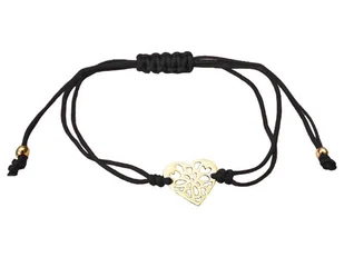 Przedstawiamy modną bransoletkę na czarnym sznurku, wzbogaconą delikatnymi, złotymi kuleczkami wykonanymi z żółtego złota o próbie 585. To ponadczasowy dodatek idealny dla każdej eleganckiej kobiety, który łączy w sobie nowoczesny design z klasycznym motywem serca. Bransoletka posiada ażurowy element w kształcie serduszka o wymiarach około 12mm x 10mm, który nadaje całości subtelnego uroku. Złote kuleczki o średnicy około 2mm doskonale kontrastują z czarnym sznurkiem, tworząc wyrafinowaną kompozycję. Regulowana długość bransoletki pozwala na idealne dopasowanie do każdego nadgarstka, co zwiększa komfort noszenia.