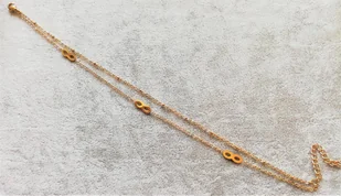 BRANSOLETKA NA NOGĘ podwójna nieskończoność STAL PODWÓJNA BRANSOLETKA NA NOGĘ Bransoletka wykonana ze stali chirurgicznej z trzema elementami znaku nieskończoności oraz dodatkowym łańcuszkiem z kuleczkami Długość około : 23cm + 5cm regulacji kolor ZŁOTY *Na innych aukcjach dostępne inne bransoletki na nogę