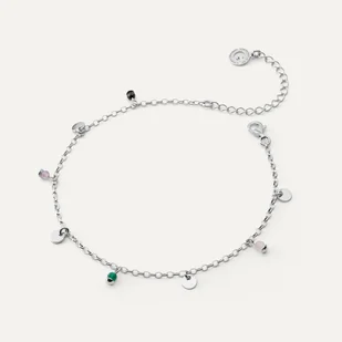 Bransoletka na nogę z blaszkami i kamieniami, srebro 925
