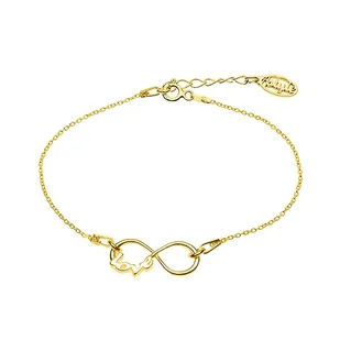 Bransoletka srebrna próby 925, wykonana na cienkim łańcuszku ze znakiem nieskończoności z napisem Love. Bransoletka jest zakończona przedłużką z metką. Stwórz biżuterię na zamówienie jaką lubisz i wybierz z dostępnych opcji: złocenie, złocenie różowe, rodowanie, rodowanie czarne lub mieszaj kolory w dowolny sposób, np. łańcuszek-złocenie, znak nieskończoności-czarne rodowanie.