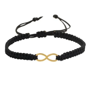 Bransoletka wykonana metodą makramy, z pozłacanej stali chirurgicznej i cienkiego poliestrowego sznurka w kolorze czarnym ,w centralnym punkcie bransoletki symbol nieskończoności. Rozmiar uniwersalny - regulowany pasuje na nadgarstek o obwodzie od około 15,5 cm i większy ( maksymalnie rozciąga się do obwodu ok. 30 cm) Bransoletka wędruje do klienta estetycznie zapakowana Stal jest wyjątkowo trwałym metalem, nie powoduje alergii. Pleciona bransoletka z pętlą nieskończoności, to niezobowiązujący dodatek, pasujący zarówno do codziennego, jak i casualowego stroju. Bransoletka może być noszona jako pojedynczy dodatek, lub można ją zestawić z innymi bransoletkami, z zależności od efektu, jaki chcemy uzyskać. Znak nieskończoności to wizualnie prosty, minimalistyczny w formie symbol, który można interpretować na wiele sposobów.
