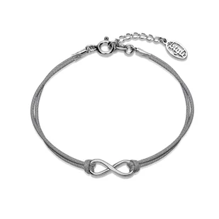 Długość bransoletki: 18 cm Długość przedłużki: 2 cm Długość znaku nieskończoności: 1,5 cm /Materiał: Srebro|Sznurek/Kamień: