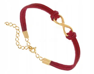 BRANSOLETKA NIESKOŃCZONOŚĆ ZŁOTA RZEMYK CZERWONA Bransoletka pozłacana ze znakiem nieskończoności Wysokiej jakości bransoletka damska wykonana z połączenia s...